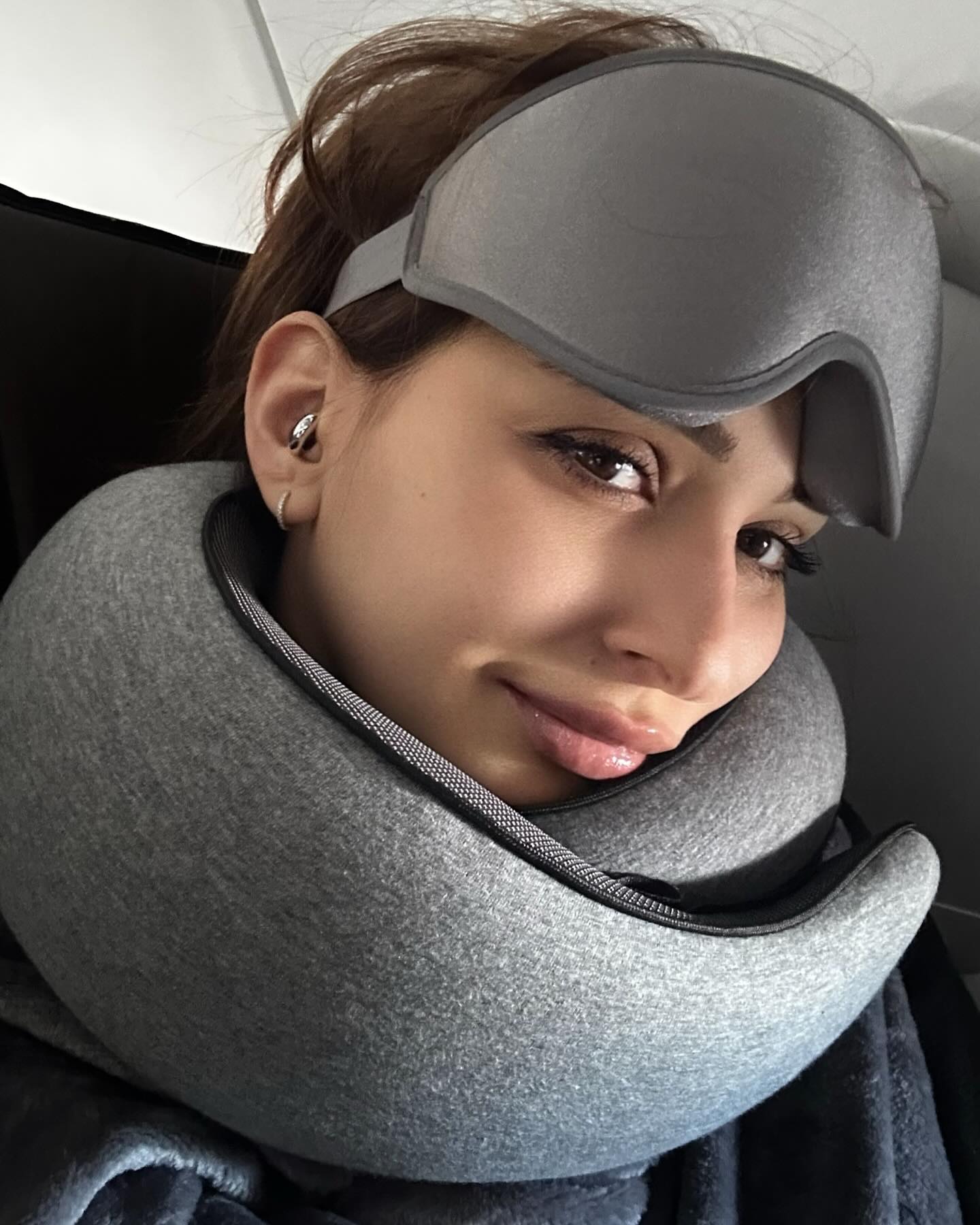 "I absolutely love it! Now I can fall asleep anywhere — the pillow is super comfortable and so easy to use. Perfect for traveling: compact, fits into any bag, and the breathable fabric keeps me both cool and cozy at the same time."